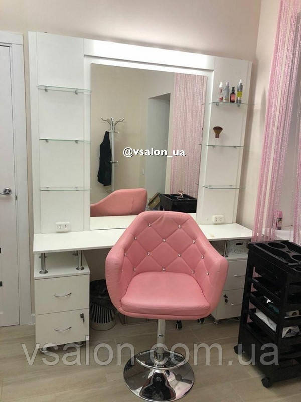 Робочий стіл для перукаря та візажиста з дзеркалом і підсвіткою. Модель V579.